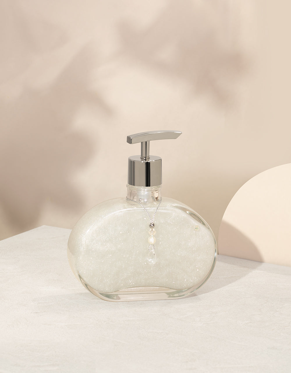 1 Frasco de vidro intense 300ml de Sabonete Líquido perolado com glitter e um cordão decorativo de cristal.